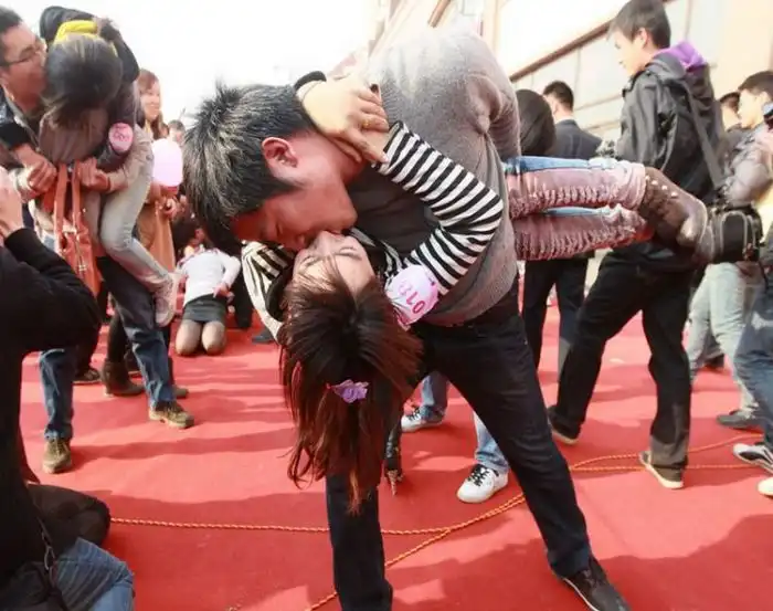 В Китае прошел конкурс на самый долгий поцелуй. Победитель получил кольцо с бриллиантом в 1 карат. Некоторые пары целовались до потери сознания, но так и не добрались до первого места. Самыми стойкими оказались возлюбленные, чей поцелуй продлился 2 часа и 43 минуты.