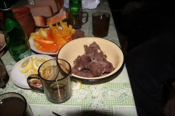 8. С собой привезли овощи, фрукты, оленина была от хозяев чума. Шурпу пили из стаканов, мясо обязательно есть руками, если вошли в чум то соблюдайте традиции-говорит Шаман.