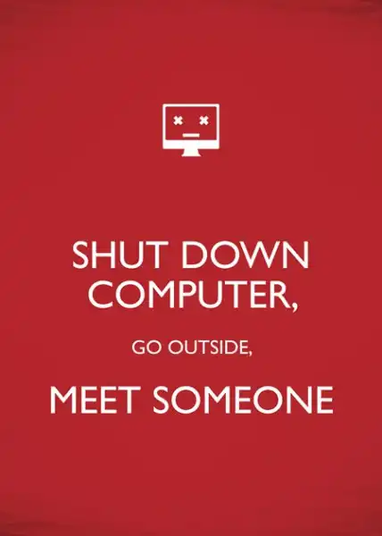 Плакат для трудоголиков. "Выключи компьютер, выйди на улицу и встреться с кем-нибудь".
