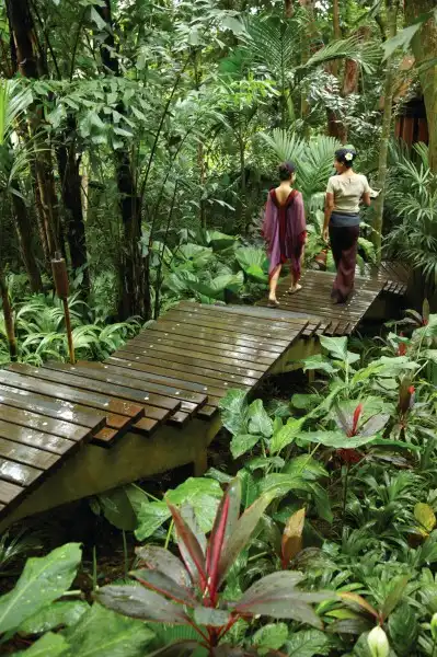 Среди белоснежных пляжей, кокосовых пальм и водопадов изысканными жемчужинами притаились резиденции. В распоряжении гостей находятся 60 однокомнатных вилл и 14 вилл, в которых количество комнат достигает пяти. Каждая вилла имеет собственный бассейн, так что абсолютное уединение тут гарантировано.