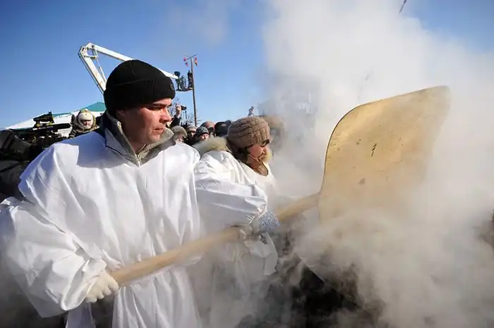которые уже третий год подряд вместо огромного блина для книги рекордов, пекут гигантский ком :)