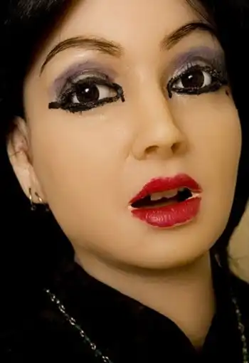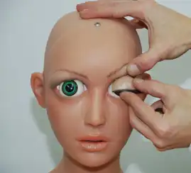 Когда вы меняете или надеваете лицо на куклу запрокиньте ее голову назад и натяните лицо на череп. Благодаря специальным магнитам лицо встанет идеально ровно. Проверьте состыковку всех магнитов между черепом и лицом. После этого запихните нижнюю часть подбородка между шеей и головой. Если вы не сделаете этого то черты лица будут искажены.