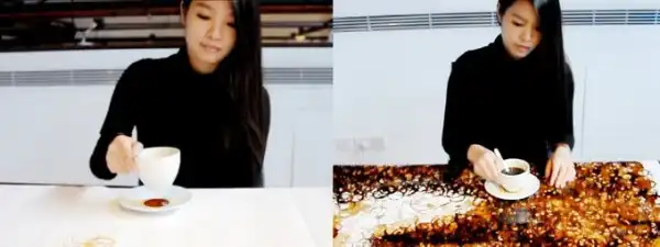 Картина, нарисованная кофе с использованием чашки, посвящена тайваньскому исполнителю и актеру Джею Чоу (Jay Chou) и его песне о любви "Secret". Песня начинается с того, что главный герой поднимает чашку кофе с блюдца.