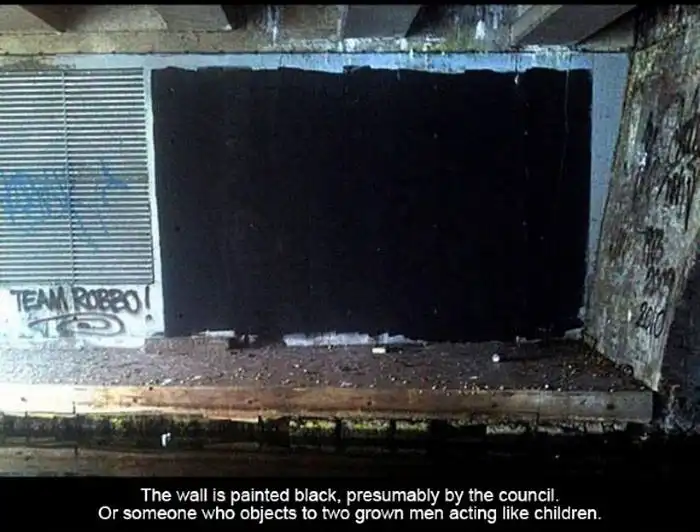 Через некоторое время городские власти просто закрасили стену черной краской.