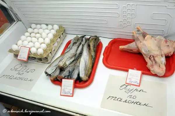 Куры и яйцо - по талонам! Не нравится - вот минтай по 35 копеек.