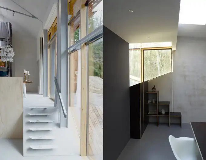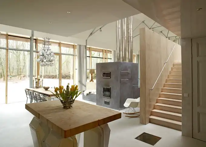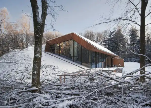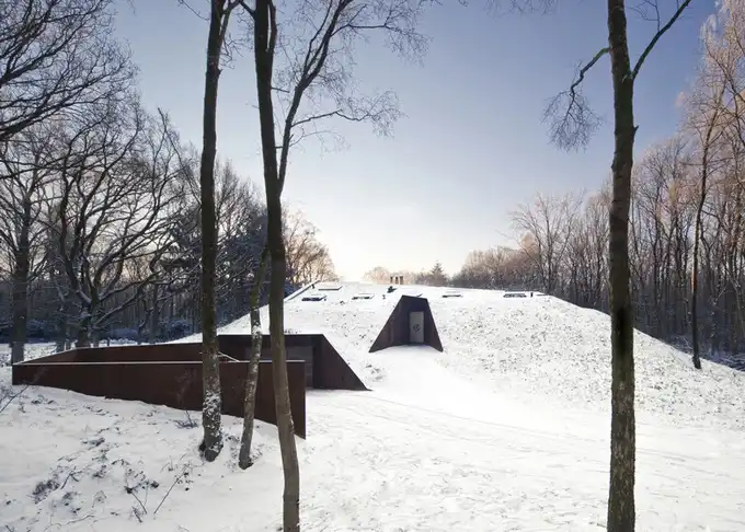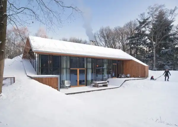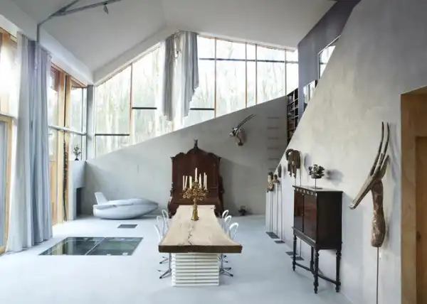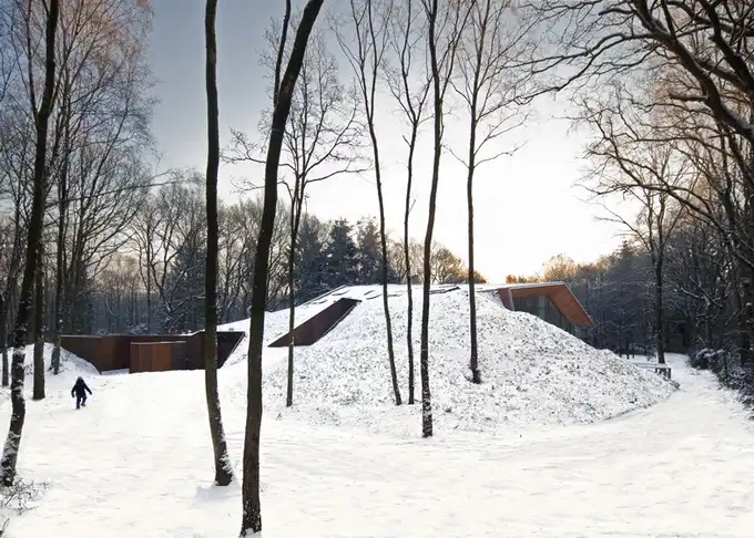 Проект голландской студии дизайна Denieuwegeneratie - Голландский горный дом. Это наполовину подземный дом, который находится в голландском заповеднике. Помимо необычной архитектуры, в доме также оригинальная мебель - книжная полка из "Ягуара" или ножки кухонного стола из мусорного ведра.