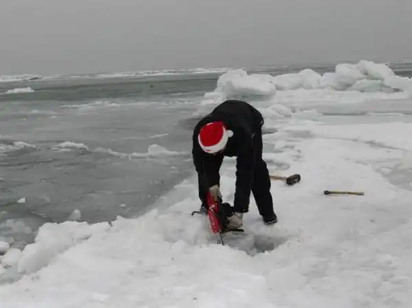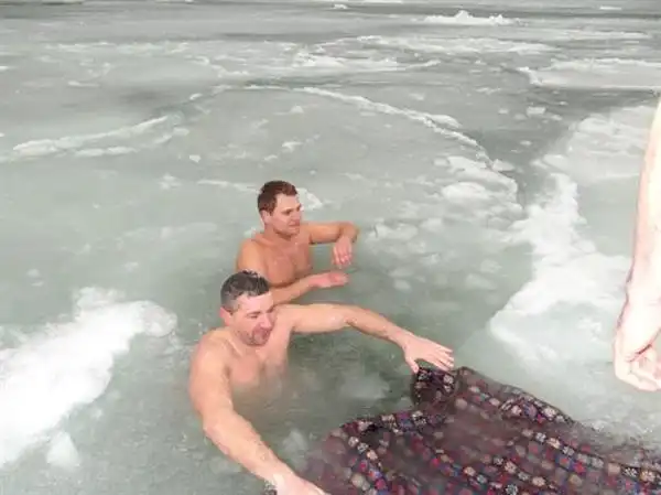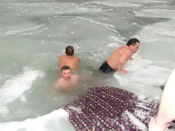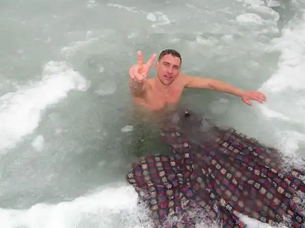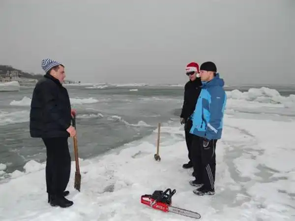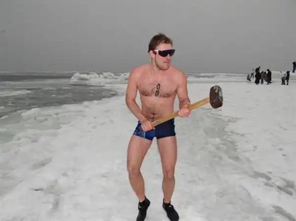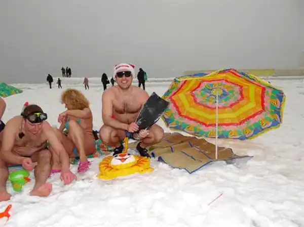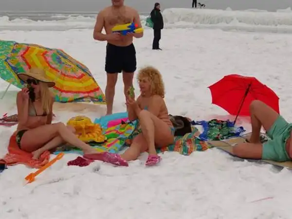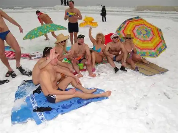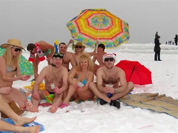 Они вышли на берег замерзшего Черного моря, чтобы позагорать под холодным солнцем :)