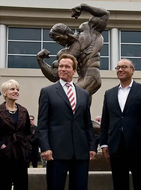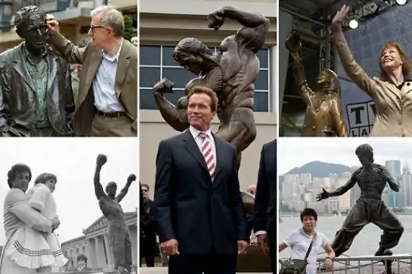 1. Арнольд ШварценеггерНа 24-ом ежегодном спортивном фестивале имени Арнольда Шварценеггера в Колумбусе, штат Огайо, вечный «терминатор» представил 2,5-метровую 260-килограммовую статую самого себя в образе молодого бодибилдера. Его бронзовая 6-метровая копия, которую он представил на открытии своего музея в Австрии, была создана на основе эскизов художника из Айдахо Ральфа Кроуфорда в 1979 году. Однако не все рады появлению этого бронзового Арнольда. Комментарий одной из жительниц: «А можно обменять ее на статую Рокки? Она бы нам больше подошла. Мы тут не ходим в цветастых рубашках и коротких шортиках. Это не Калифорния и даже не Флорида». (Zuma / Newscom)