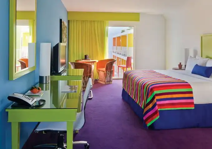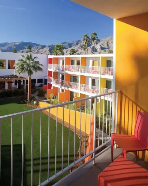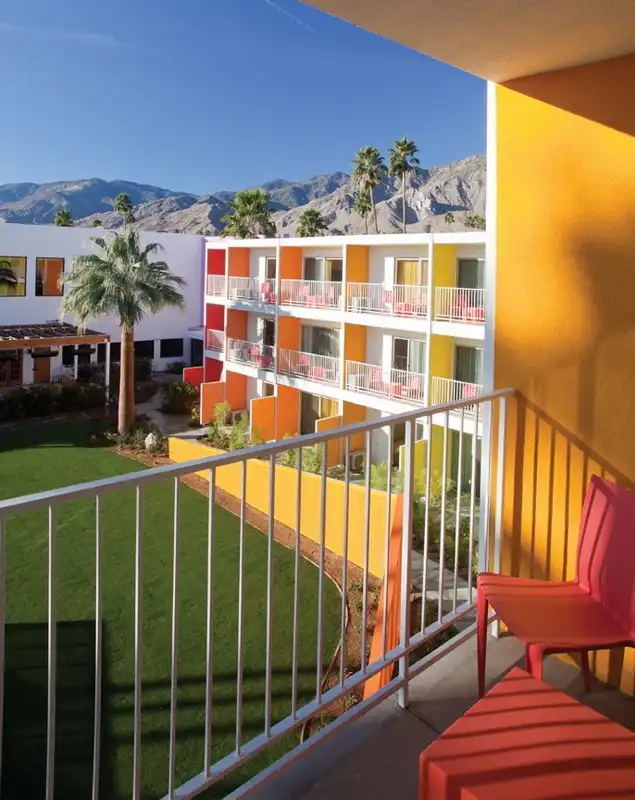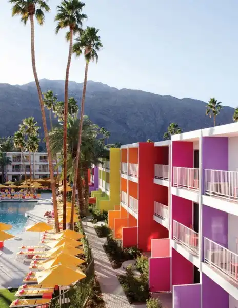 Новый отель Saguaro в Палм-Спрингс окрашен во все цвета радуги и даже более того. Архитекторы Питер Стемберг (Peter Stamberg) и Пол Афериат (Paul Aferiat) использовали 12 ярких тонов, идентичных полевым цветам, найденных в местности вокруг отеля. Отель открыт в феврале прошлого года, в нем 245 номеров.