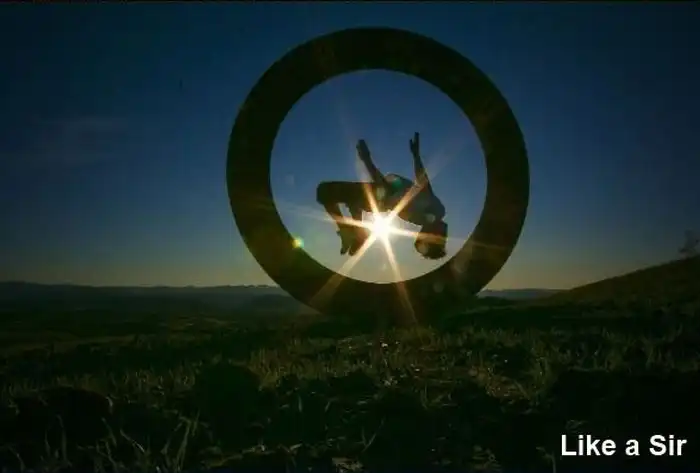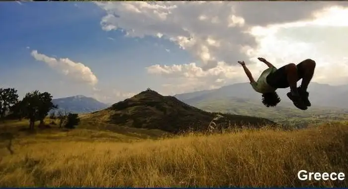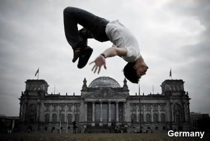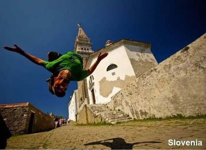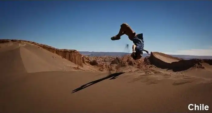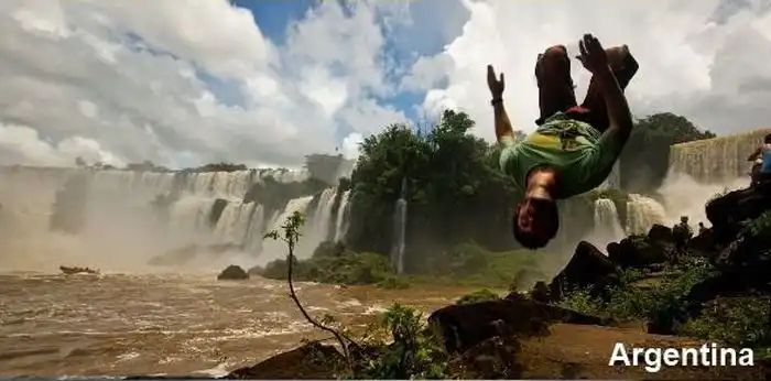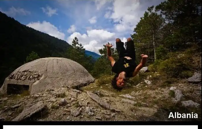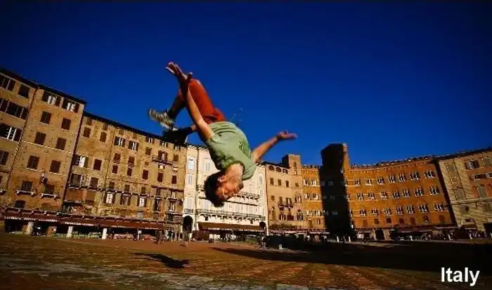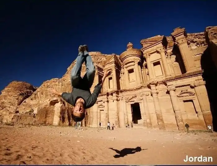 Все мы привозим отличные снимки с наших путешествий. Обычно, все они однотипны и скучны в стиле: "я на фоне моря" или "я на фоне достопримечательности". Но это не касается этого парня, который любит странствовать по миру и высоко прыгать :) Здорово получилось!