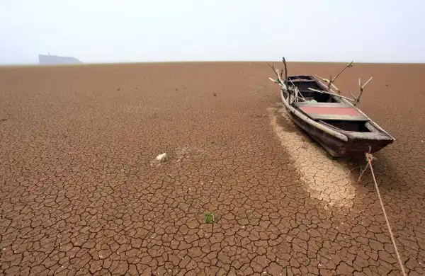 20. Засуха в Восточном Китае вынудила людей надолго покинуть высохшее озеро.