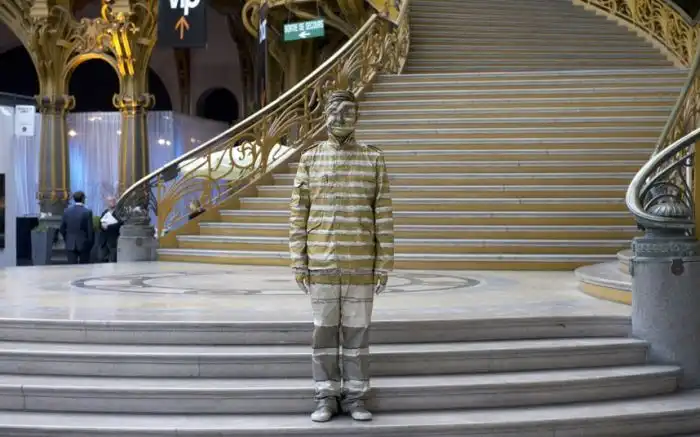 Помните, я не раз вам показывал про парня по имени Лю Болин. Он - человек-невидимка. У него есть дар сливаться с окружающей средой, словно он хамелеон. Но не подумайте, что у него есть суперспособности, просто его помощники умело орудуют кистью и красками.