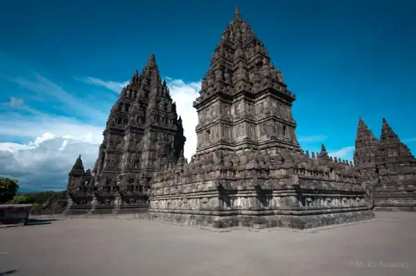 Издалека Прамбанан напоминает скалы причудливой формы, но если подойти поближе начинаешь различать, что перед нами величественное каменное сооружение, построенное руками человека! Строительство храмового комплекса началось ещё в 9 веке. Прамбанан построили в честь победы индуистского царя Ракаи Пикатана над последним буддийским царём из династии Сайлендра в 856 году. Конечно, время не пожалело столь грандиозное сооружение. Кое-какие строения храмового комплекса обрушились, а камни, из которых построен Прамбанан, потемнели, стали почти чёрными…