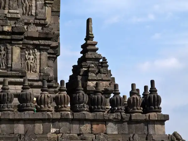 Храмовый комплекс состоит из множества храмов, но центральной частью Прамбанана считается 47-метровая Лоро Джонгранг. Под этим названием скрываются три больших храма, которые буквально возвышаются над всеми остальными сооружениями комплекса. Они посвящены богам Вишне, Шиве и Брахме.