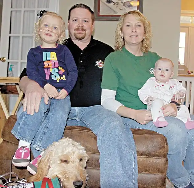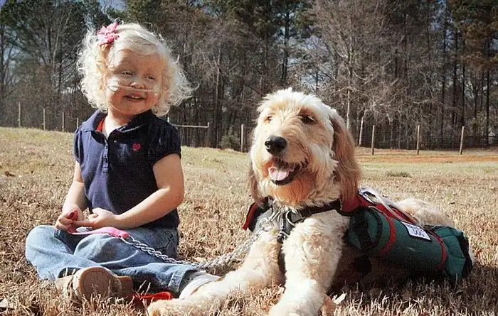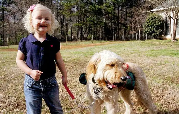 Теперь специально обученная собака и девочка неразлучны, они стали лучшеми друзьями.