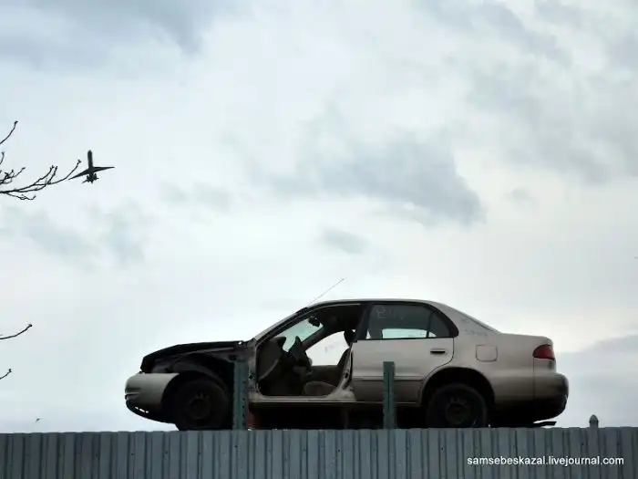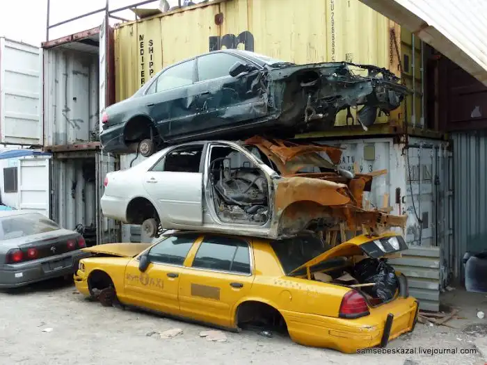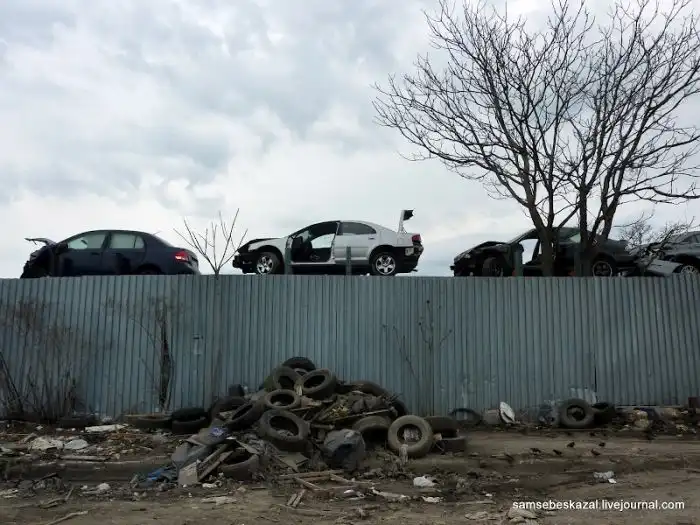 В итоге эта дорога приводит к большой свалке автомобилей и массе механиков,