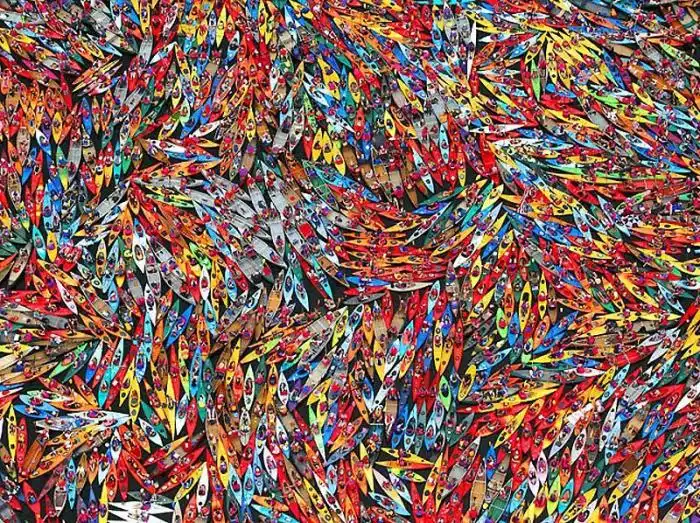 4. Самый большой в мире плот состоял из 1925 каноэ и байдарок в Инлете, штат Нью-Йорк.