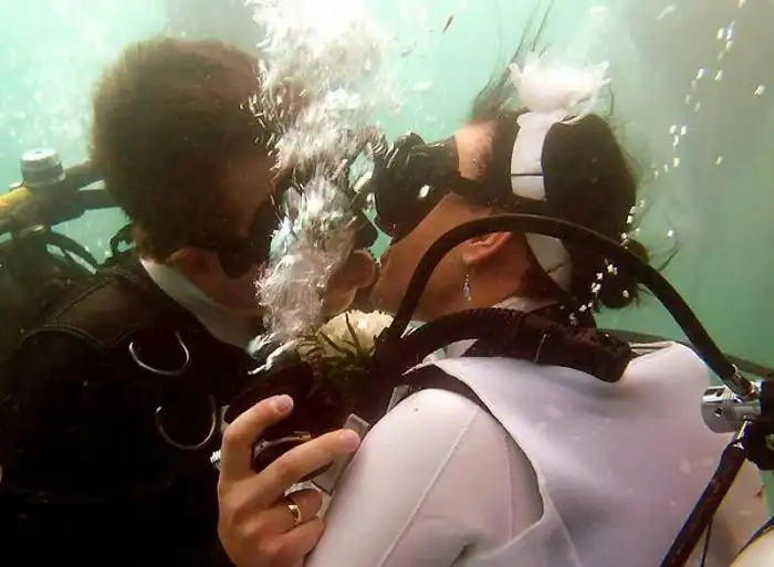 12. Самая большая подводная свадьба состоялась в Польше. Ева и Павел Яворжно пригласили 275 гостей.