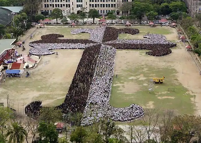 14. Самый большой крест из людей создали 24000 студентов в Маниле.