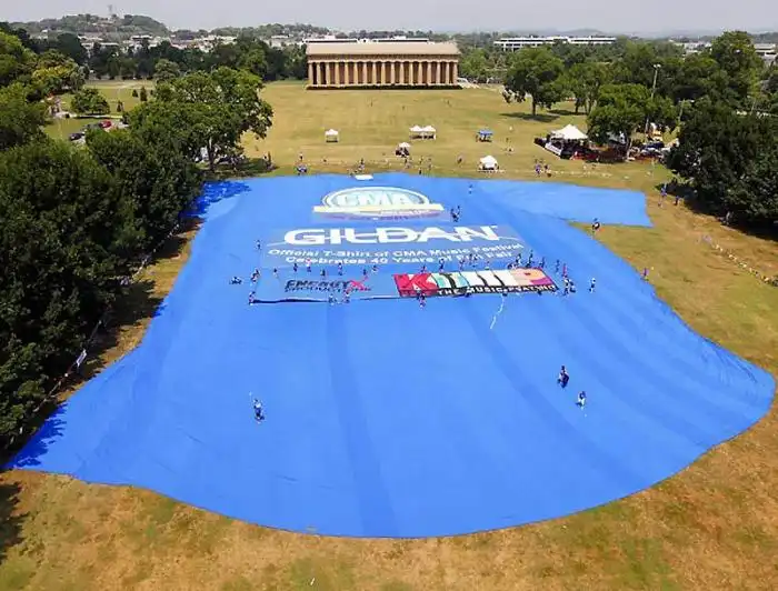 18. Самая большая в мире футболка составила 85,74 метра в длину и 55,13 метров в ширину, Нэшвилл, США.