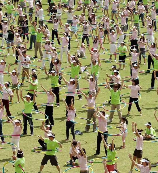 5. 2496 человек одновременно вращали обруч в Тайбэе, Тайвань, 20 августа 2011.
