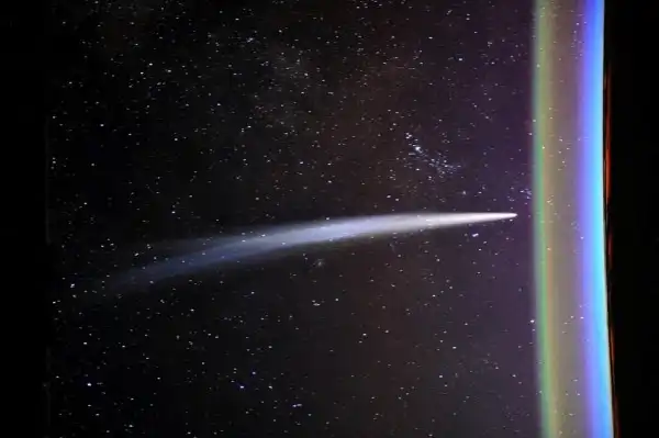 33. Комета C/2011 W3 (Лавджоя), сфотографированная командиром МКС Деном Бербанком, одним из первых, кто увидел её в день запуска.
