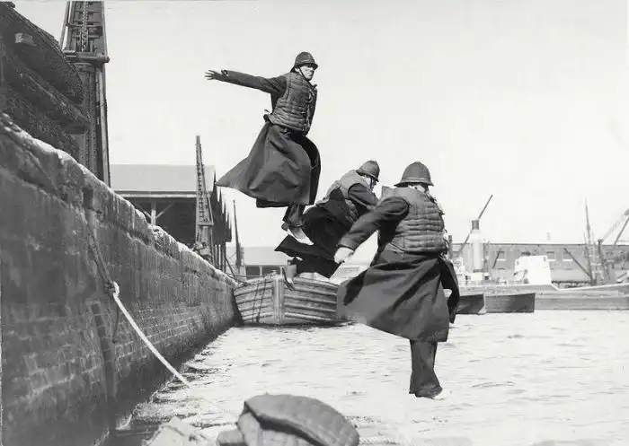 15. Мальчик повесил петарду на полицейского. Сейчас бабахнет. Лондон, 5 ноября 1925 года.