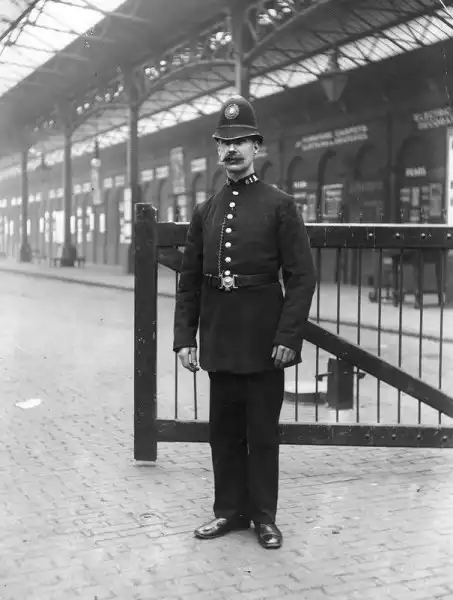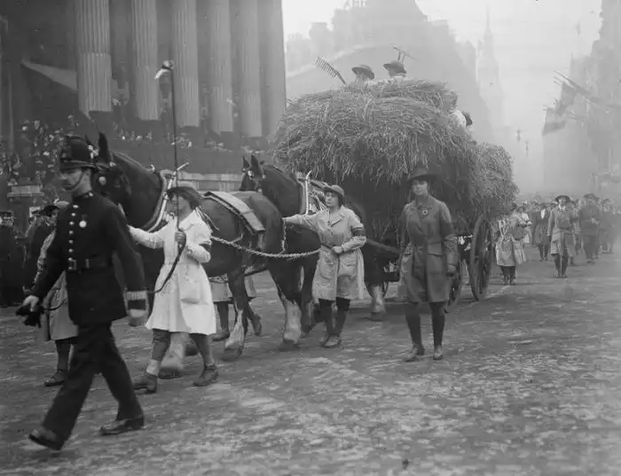 50. Полисмен сопровождает селян на Шоу Лонда Майора в Лондоне. Ноябрь 1917 года.