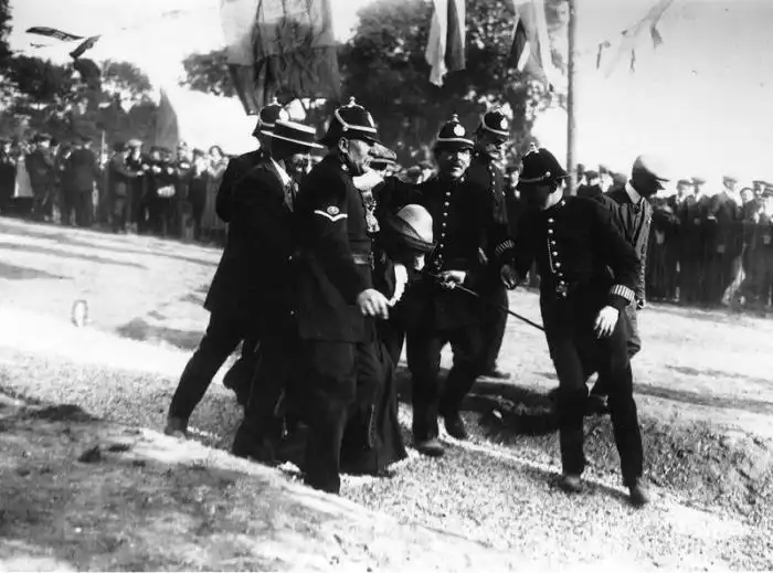 4. Задержание суффражиста в лондонском парке Сент-Джеймс, после акции в Букингенском дворце. 1912 год.