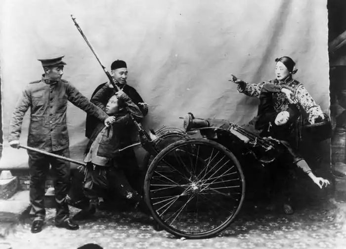 24. Постановочная сцена с участием китайского полицейского. Китай, 1900 год.