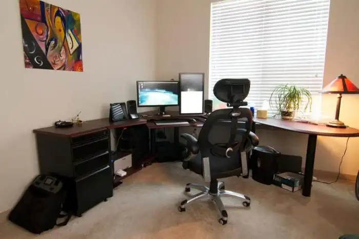 Люди обустроили уголок для занятия работой в домашних условиях.