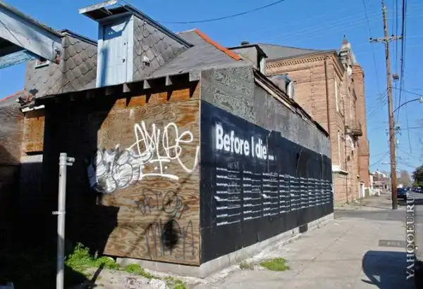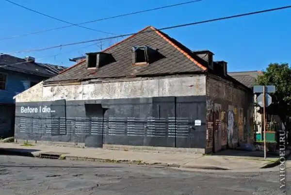 Современное искусство по-новоорлеански представляет собой стену заброшенного дома, преобразованную в книгу целей. Свои «последние» желания оставляют случайные прохожие, а также посетители бара, который и находится за «стеной последних желаний». Автор проекта — художник и дизайнер Candy Chang.