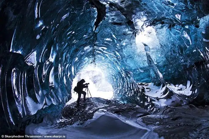 Фотографы Orvar Atli, Skarphedinn Thrainsson и Eric Guth занимаются фотографированием ледников и ледяных пещер уже многие годы. На Аляске, в Исландии и многих других уголках планеты ледника можно обнаружить потрясающей красоты пещеры.