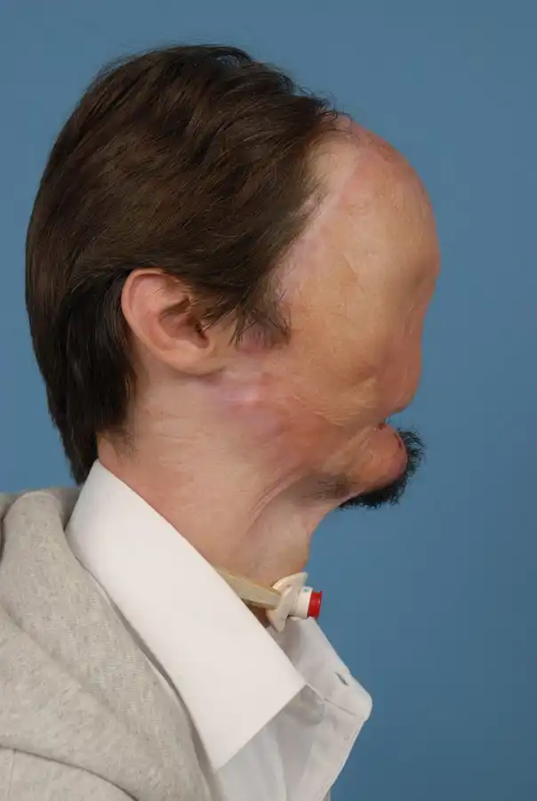 4. Пациент Даллас Винс в декабре 2010 года, Даллас, штат Техас. Пластические хирурги клиники «Brigham and Women’s Hospital» в Бостоне сначала говорили, что повреждения Минса слишком обширны для трансплантации лица, но пересмотрели своё мнение, когда обнаружилось, что на лице осталось ещё достаточно нервных окончаний.