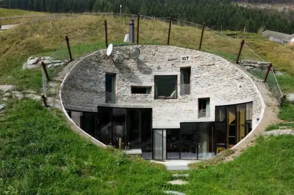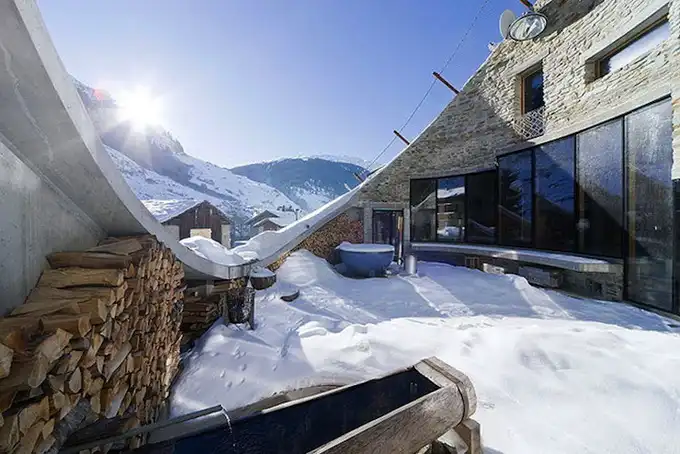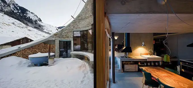Эта невероятная вилла построена непосредственно на склоне Альпийской горы. Бьярне Мастенбрек (Bjarne Mastenbroek) и Кристиан Мюллер (Christian Müller) из архитектурных фирм SeARCH и CMA в 2009 году совместно спроектировали и построили этот загородный дом в Швейцарии.