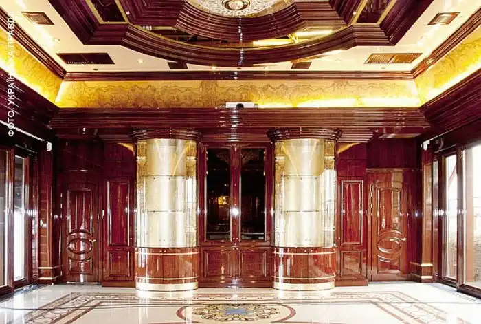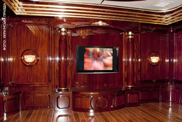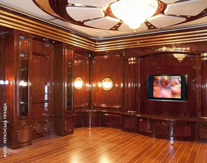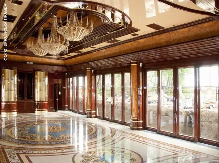 Помните, как-то раз, я вам показывал "скромный" загородный домик Януковича. Так вот, в интернет просочились новые фотографии его резиденции. Обстановка там действительно шикарная. На стенах и потолке ценные породы древесины, а на полу - мрамор, всюду позолота и хрусталь.