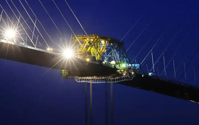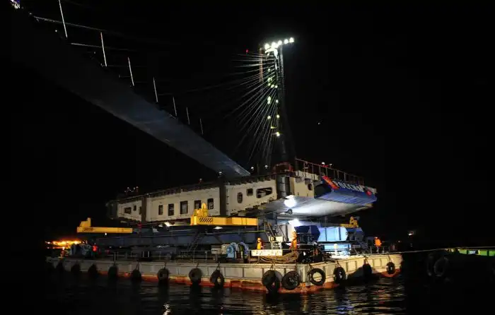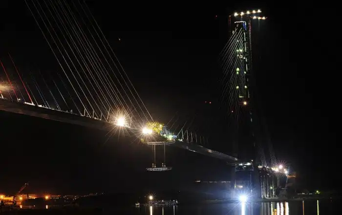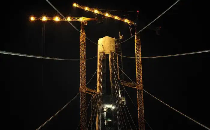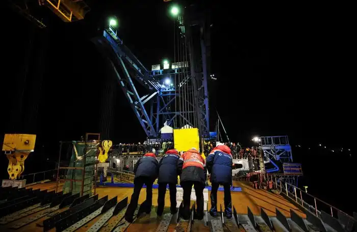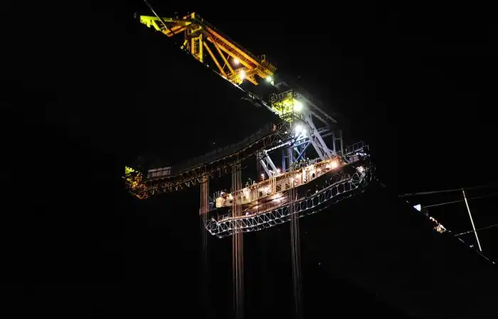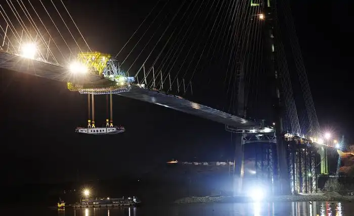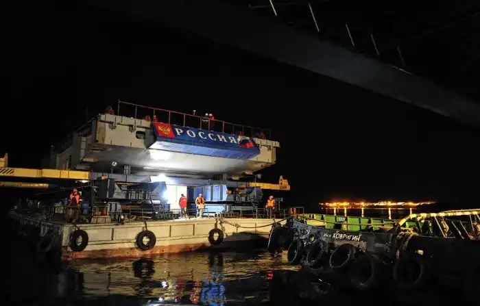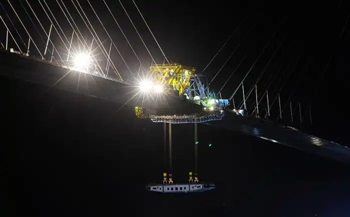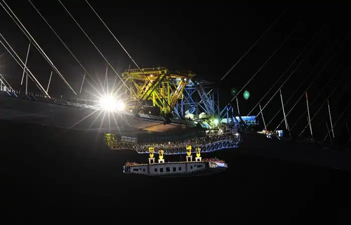 Но вот, несмотря на всё, поздним вечером была поднята последняя замковая панель, и мост сомкнулся.