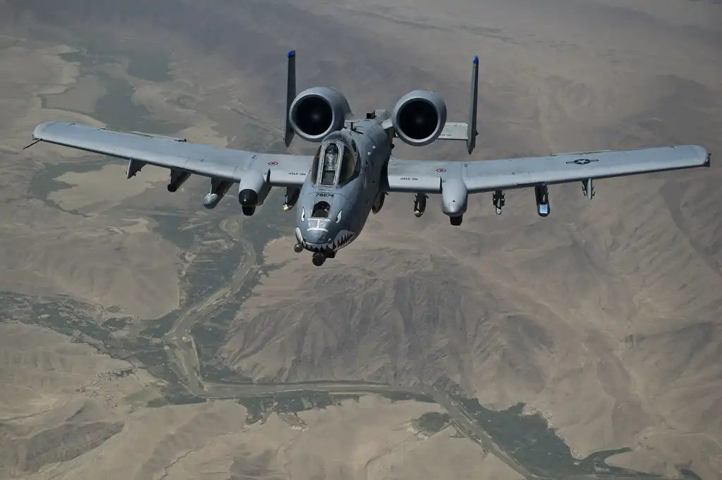 16. Штурмовик А-10 "Тандерболт II" над Афганистаном, 18 августа 2011 года. И А-10, и его 30-миллиметровая пушка были приняты на вооружение в 1977 году. Вес пушки составляет 16% веса всего самолета. (U.S. Air Force photo by Master Sgt. Jeffrey Allen)