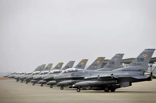 22. Девять истребителей F-16 готовятся к взлету, авиабаза Шоу, Южная Каролина, 10 января 2012 года. В Южной Корее была развернута 55-я экспедиционная эскадрилья из 12 F-16 и 250 человек личного состава. (U.S. Air Force photo by Senior Airman Kenny Holston)