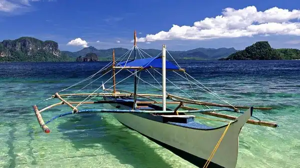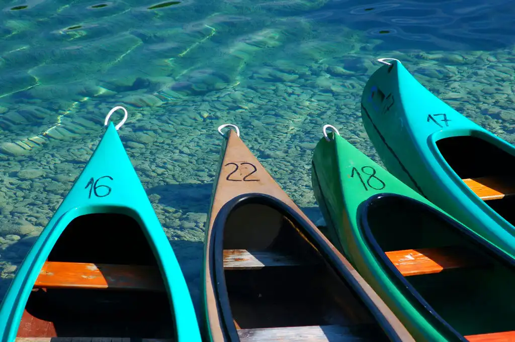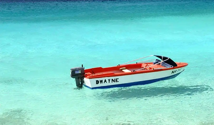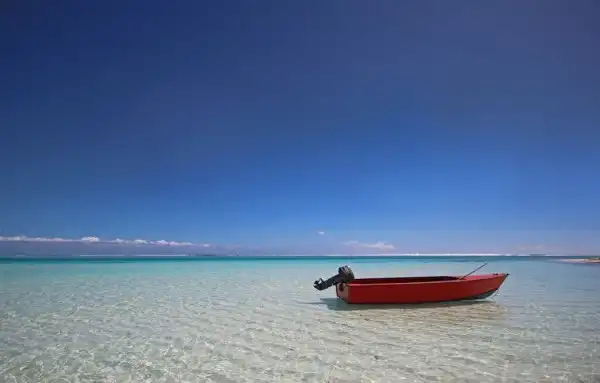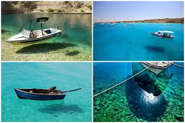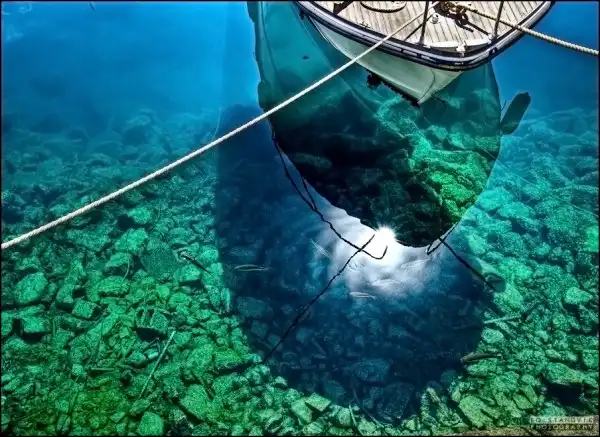 Когда лодка стоит на кристально чистой воде создается интересный эффект, кажется что она просто парит в воздухе.