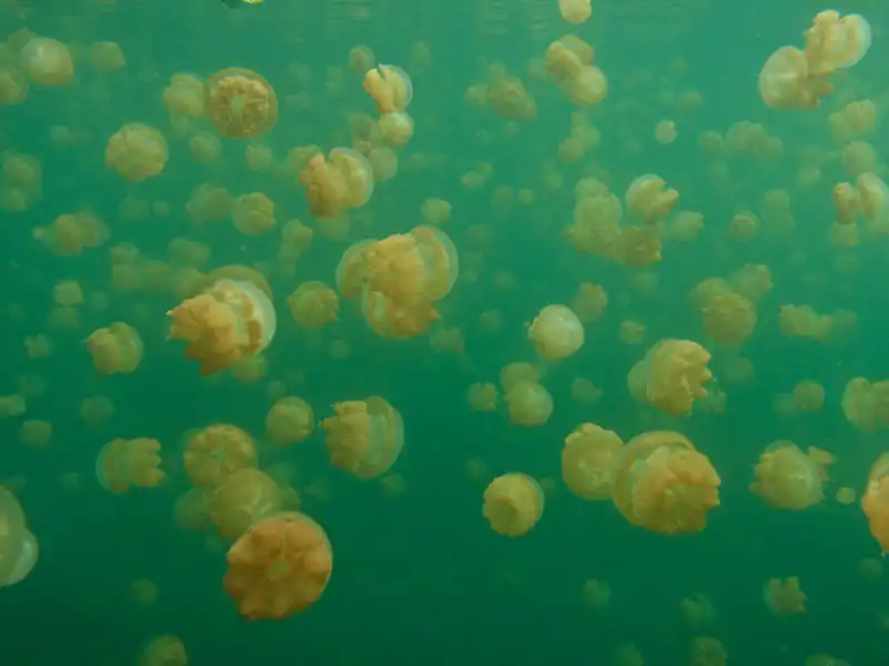 В восточной части густо поросшего лесом острова Эил-Малк, входящего в состав архипелага Скалистые острова (государство Палау) находится удивительное морское озеро, в котором живет огромное количество медуз. Причем живут здесь медузы только двух видов – золотые и лунные.