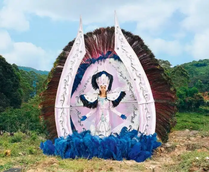 Нет, это не Рио-де-Жанейро. А всего лишь Посус-ди-Калдас, невзрачный городок в окрестностях Сан-Паулу. Но костюмы его карнавальных королев считаются красивейшими в Бразилии. Например, вот этот: он называется «Отражение природы».