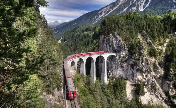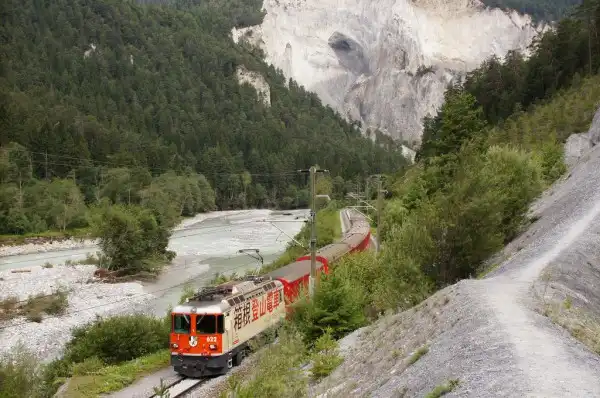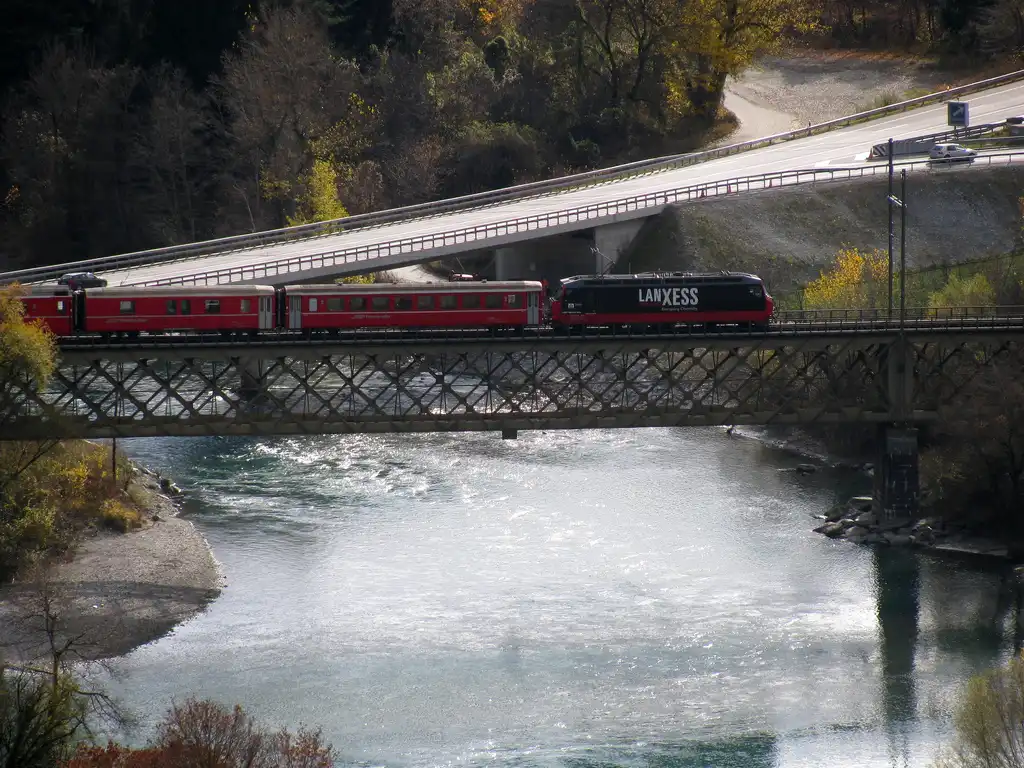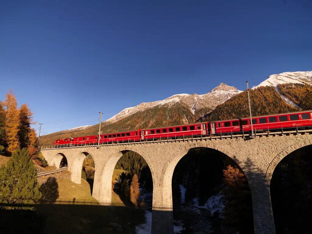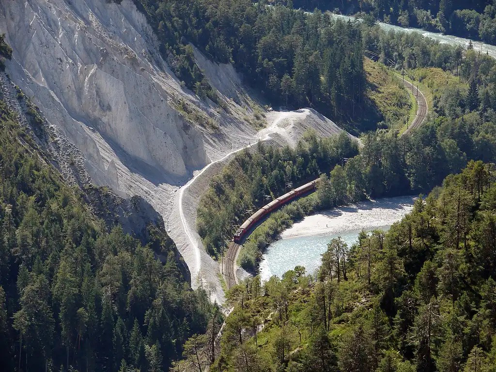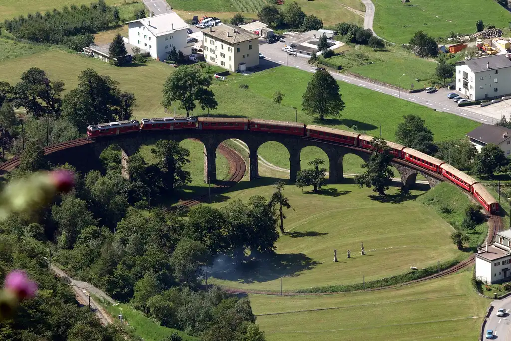 Ретийская железная дорога – одна из визитных карточек Швейцарии. Мимо нависающих скалистых утесов, глубоких ущелий и речных долин, перевалов, мостов-виадуков, через замысловатые тоннели, все выше и выше, к подступающим прямо к полотну дороги горам, снегу и горнолыжным курортам несется ярко-красный экспресс, давно ставший символом страны. Путешествие по этой живописной дороге – настоящая экскурсия по одному из самых труднодоступных уголков Альп.