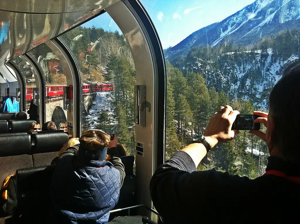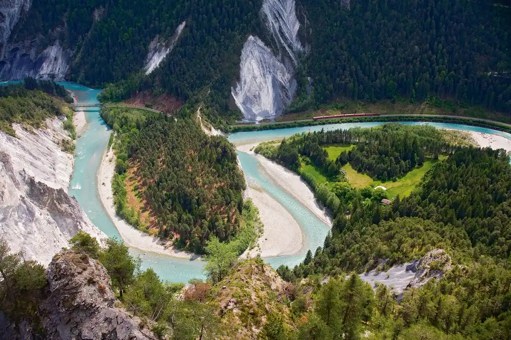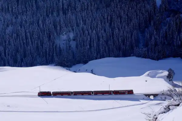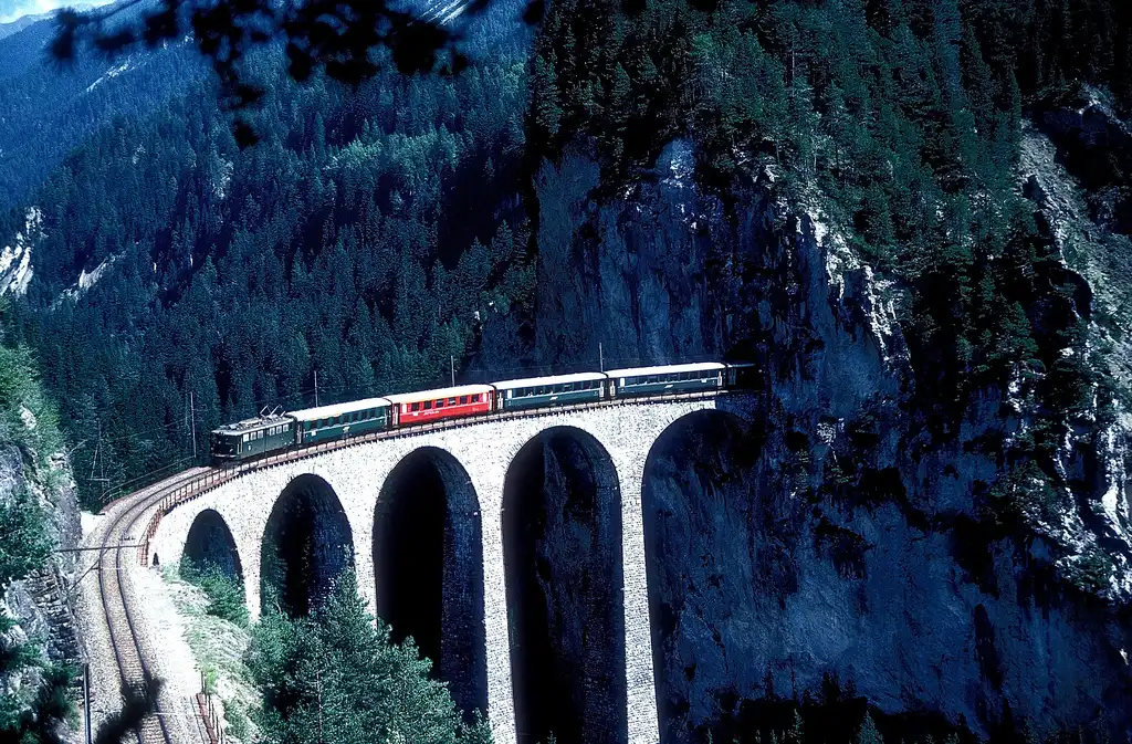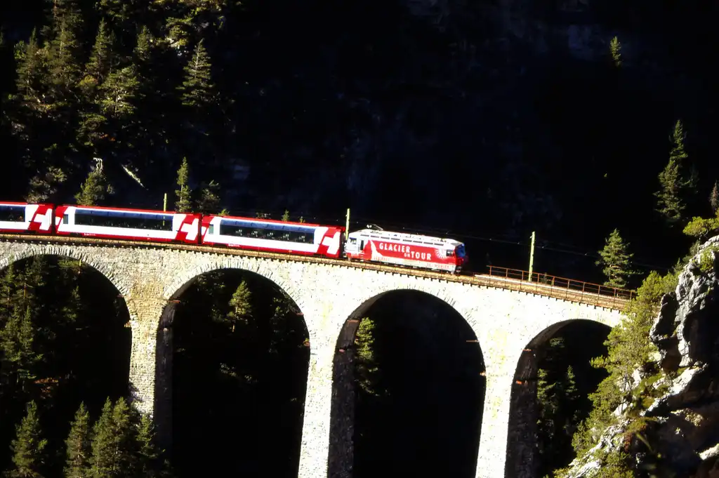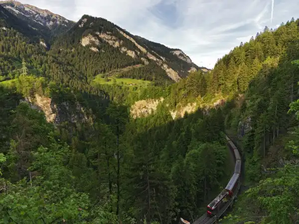 Ретийская железная дорога – одна из визитных карточек Швейцарии. Мимо нависающих скалистых утесов, глубоких ущелий и речных долин, перевалов, мостов-виадуков, через замысловатые тоннели, все выше и выше, к подступающим прямо к полотну дороги горам, снегу и горнолыжным курортам несется ярко-красный экспресс, давно ставший символом страны. Путешествие по этой живописной дороге – настоящая экскурсия по одному из самых труднодоступных уголков Альп.