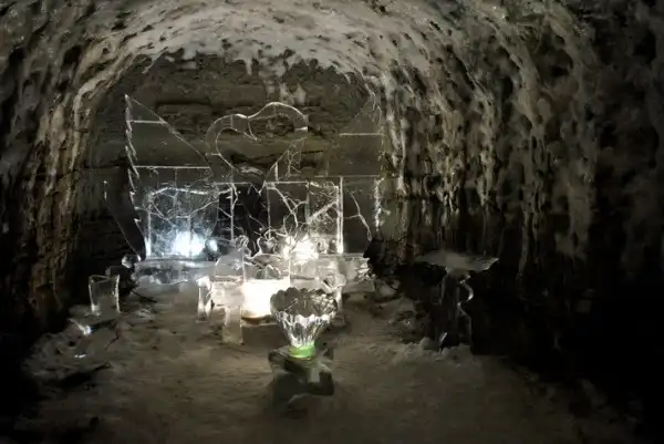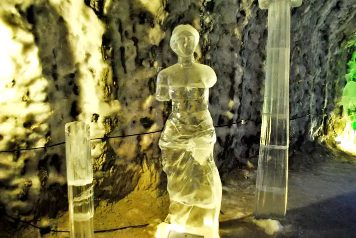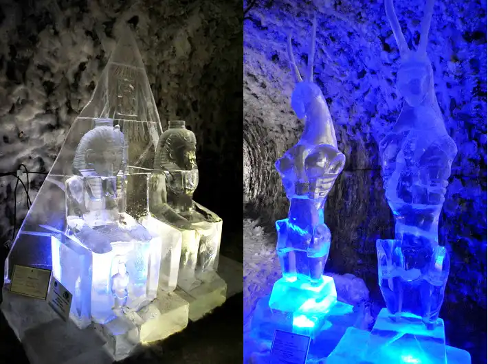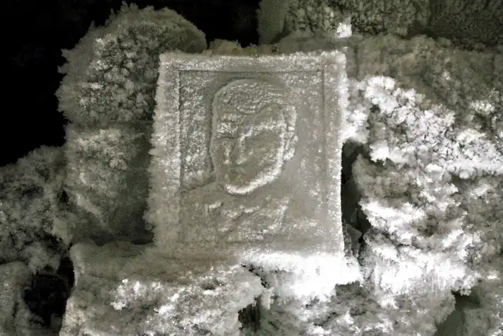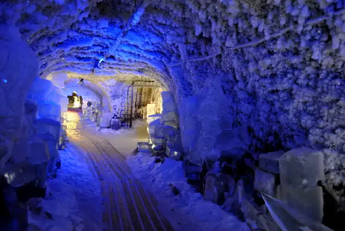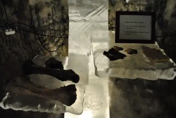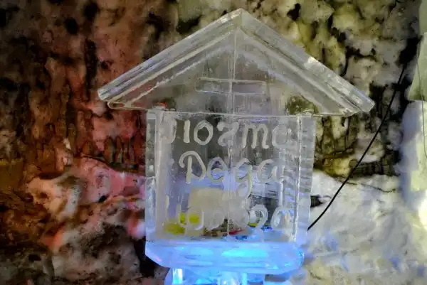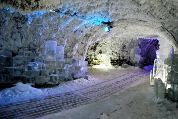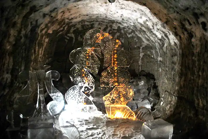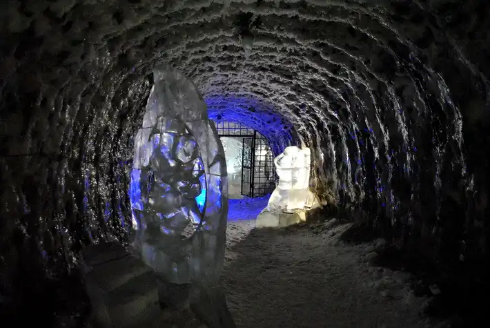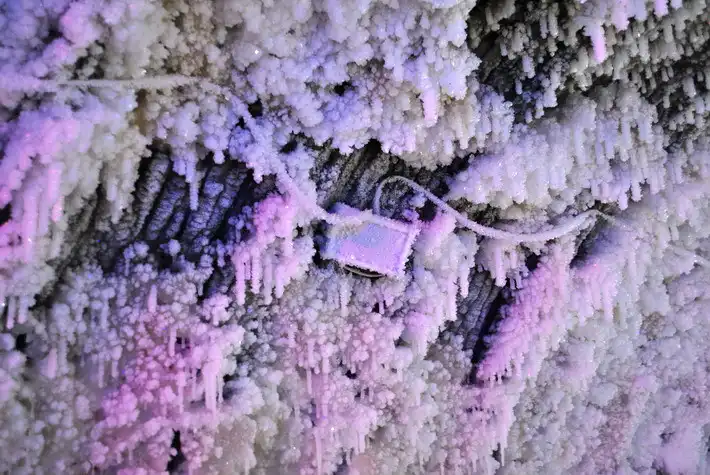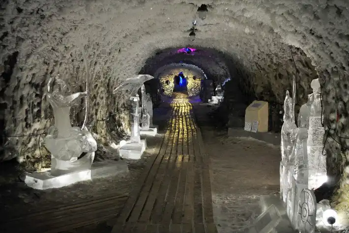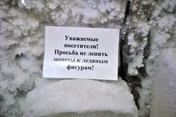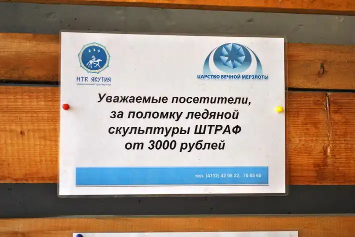 В общем, приехали мы к какой-то горе километрах в 30 от Якутска, попрыгали через лужи грязи ко входу, заплатили по 400 рублей с рыла, открыли обычную офисную пластиковую дверь и оказались в зазеркалье с температурой минус 14. Ожидания не оправдались на все сто: то, что будет круто, стало ясно в первую же секунду.