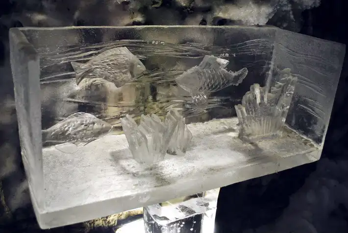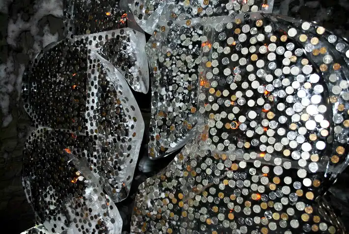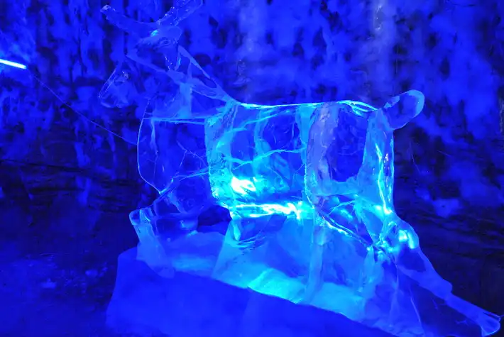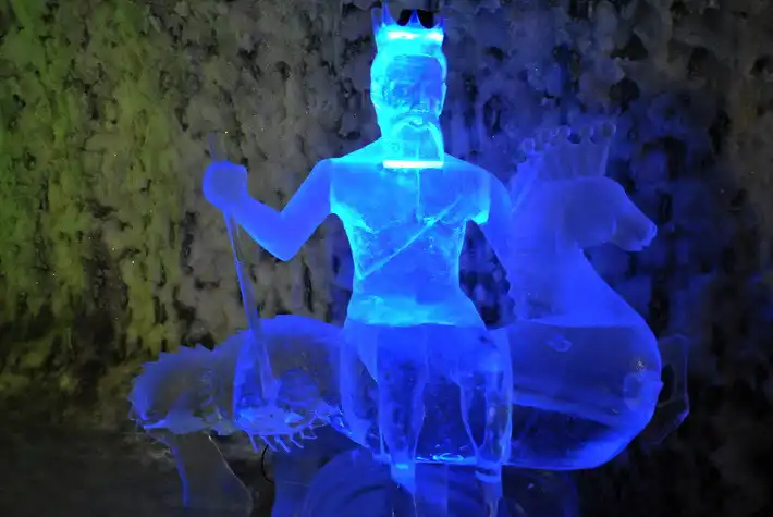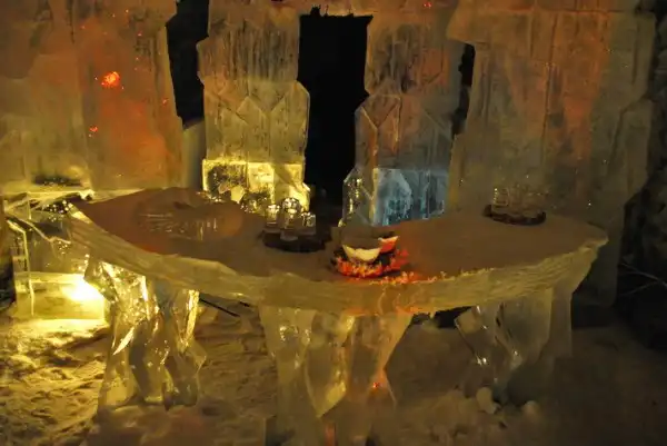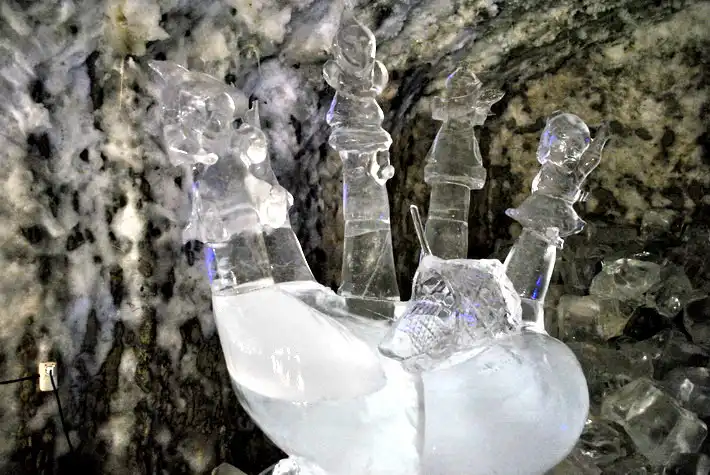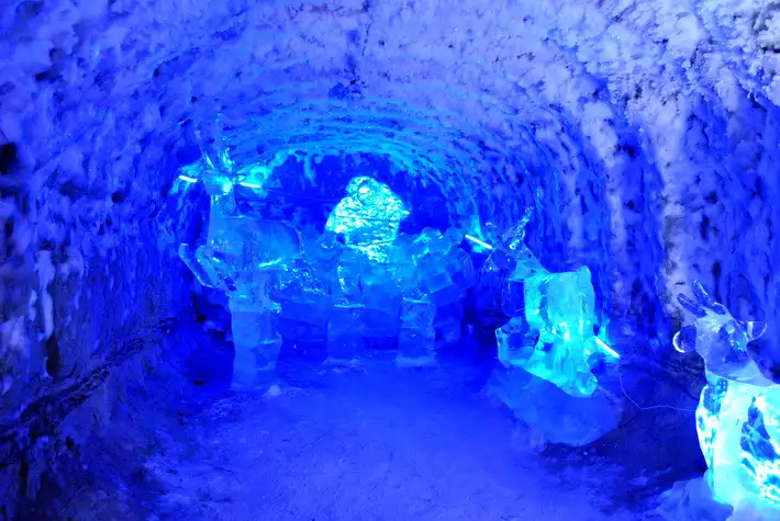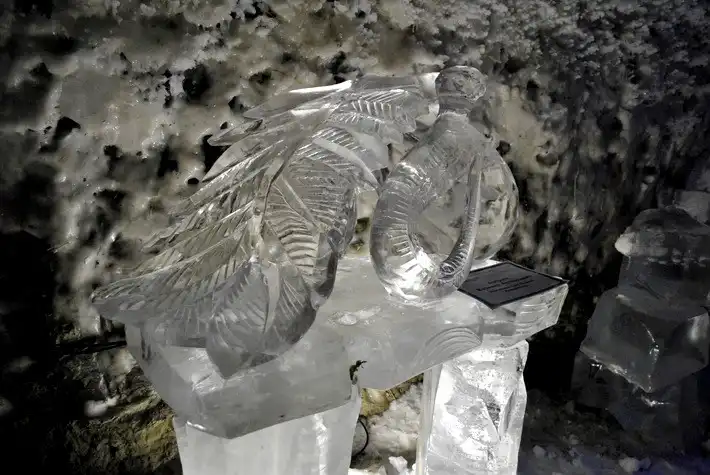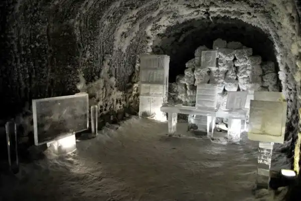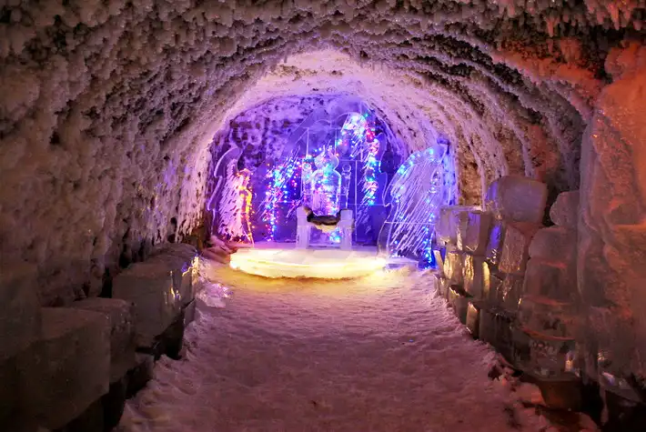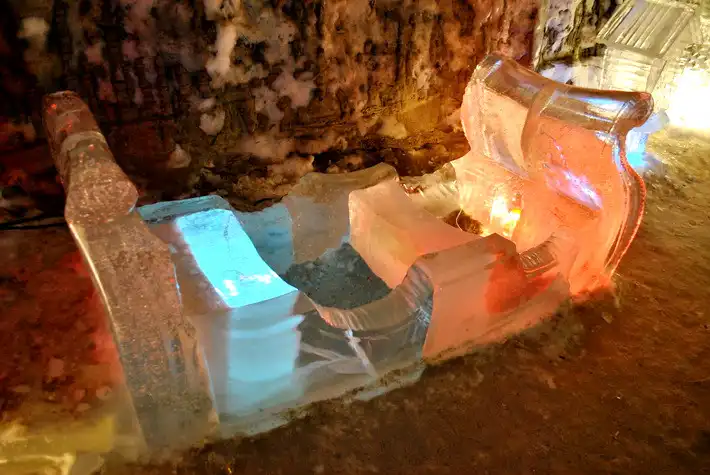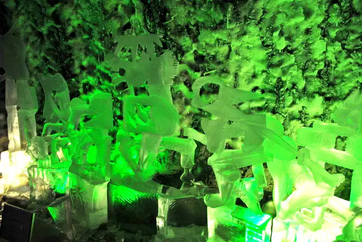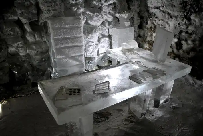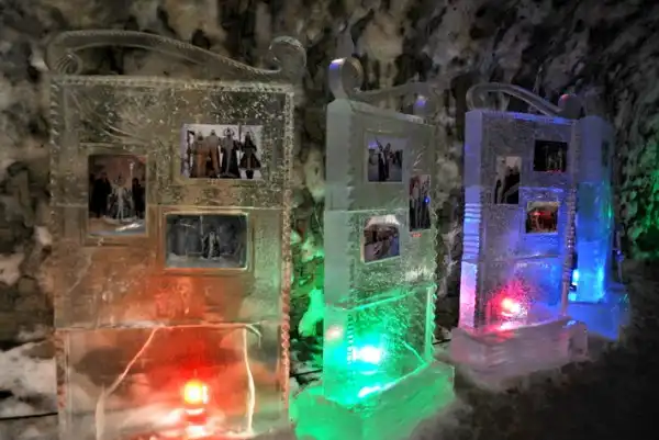 В общем, приехали мы к какой-то горе километрах в 30 от Якутска, попрыгали через лужи грязи ко входу, заплатили по 400 рублей с рыла, открыли обычную офисную пластиковую дверь и оказались в зазеркалье с температурой минус 14. Ожидания не оправдались на все сто: то, что будет круто, стало ясно в первую же секунду.