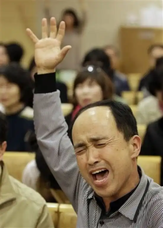 На этой службе они вели себя ничуть не лучше, чем фанаты Леди Гаги...