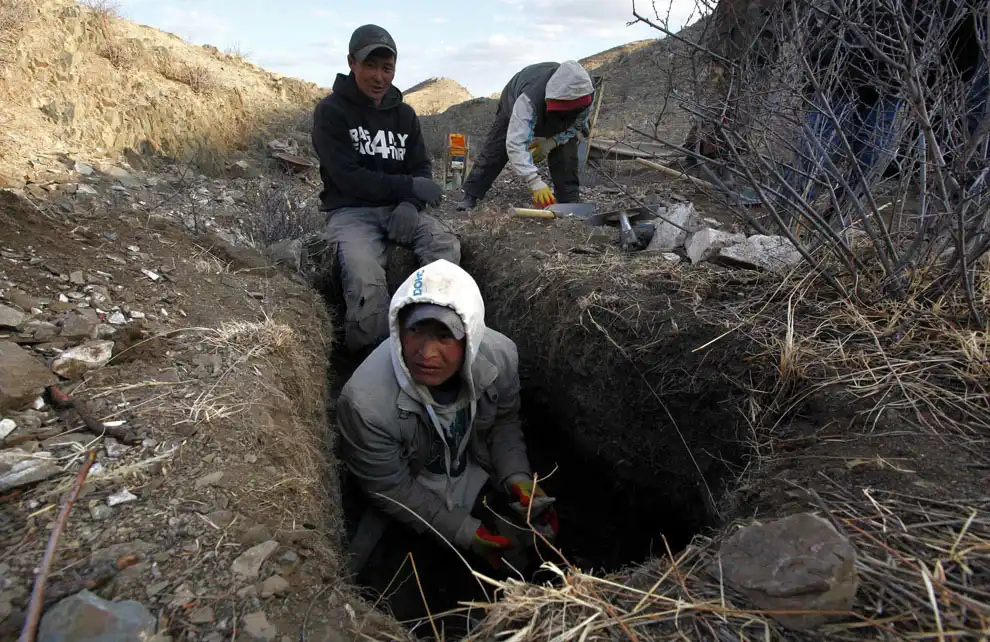 А вот и они, роют ямы к юго-западу от Улан-Батора: