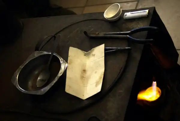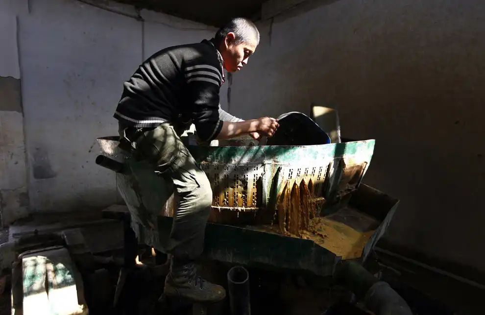 Определение чистоты золото на заводике к северу от Улан-Батора: