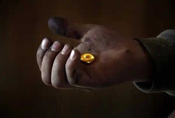 «Черные копатели» вместе со своими семьями следуют за официальными золотодобывающими компаниями, роются в отвалах на местах бывших промышленных разработок и вручную моют золото: